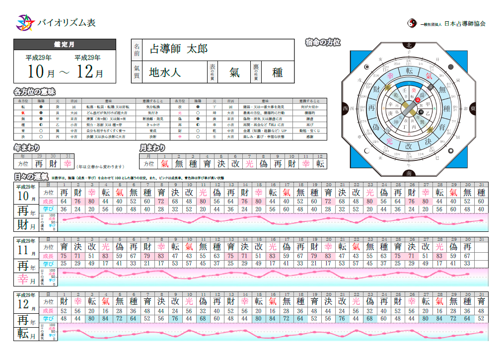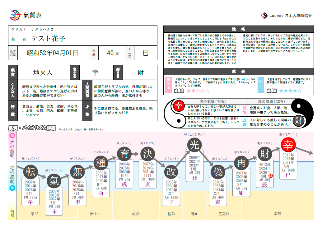 家族それぞれの気質がわかりいろいろなことが納得できました。自分が歩んできた人生の節目の意味もバイオリズム表の説明でさらに納得しました。これから陰陽六行を生活に取り入れていけば上手くいくと確信しました。