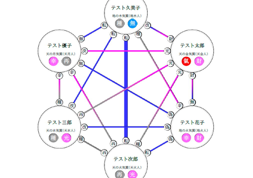 陰陽六行を用いて周りの方との御縁関係を導き出します(最大6名まで)